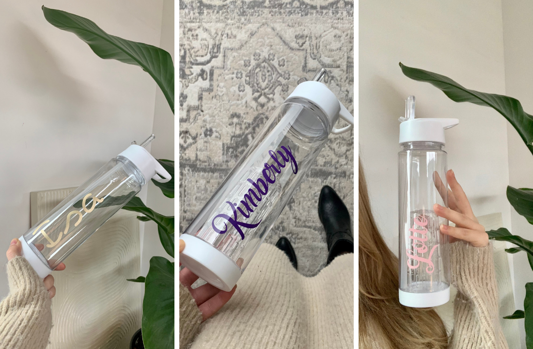 Motivatie Waterfles met Nederlandse Tijdsmarkering met Rietje Rosรฉ Gold