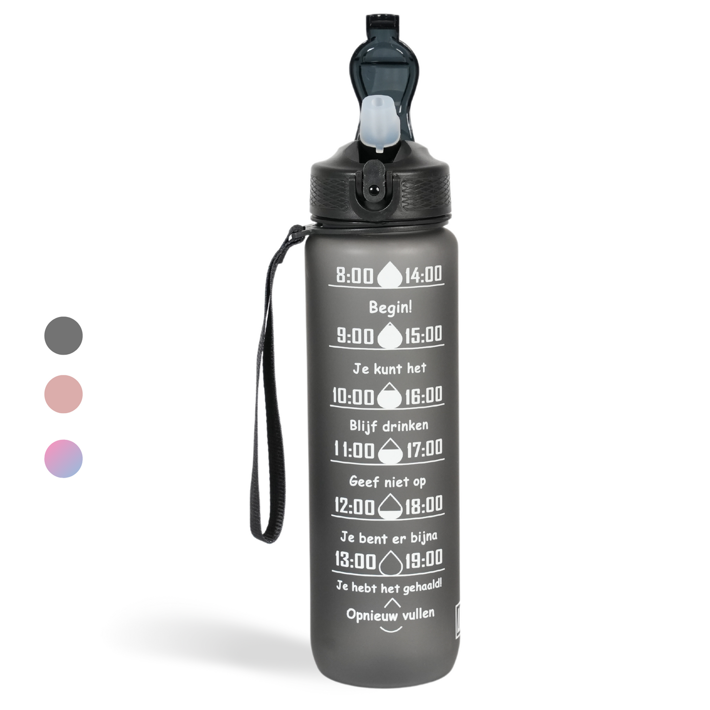 Motivatie Waterfles met Nederlandse Tijdsmarkering met Rietje Grijs
